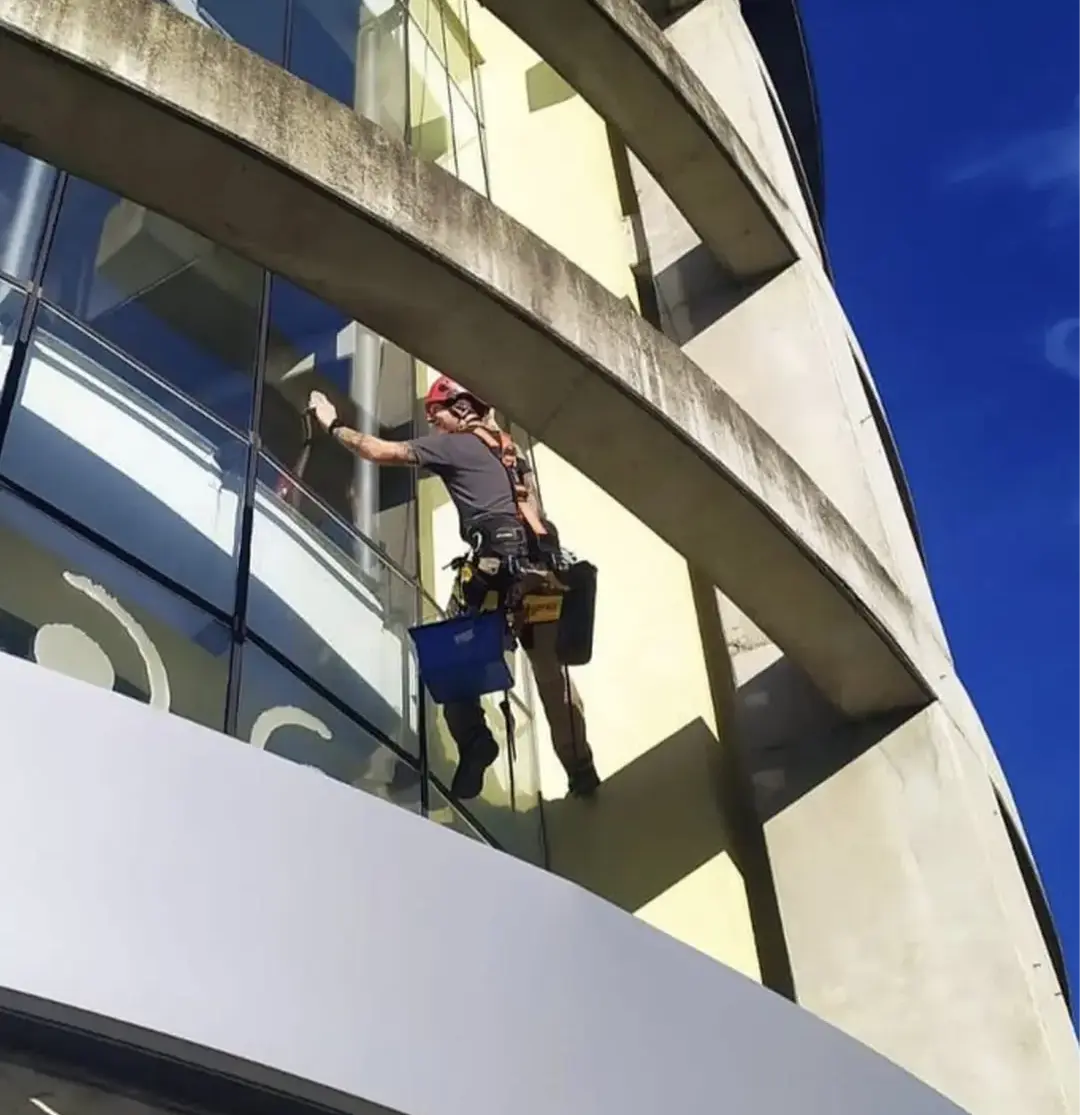 Výškové práce vykonáváme převážně s použitím horolezecké techniky bez nutnosti použití plošin a lešení.